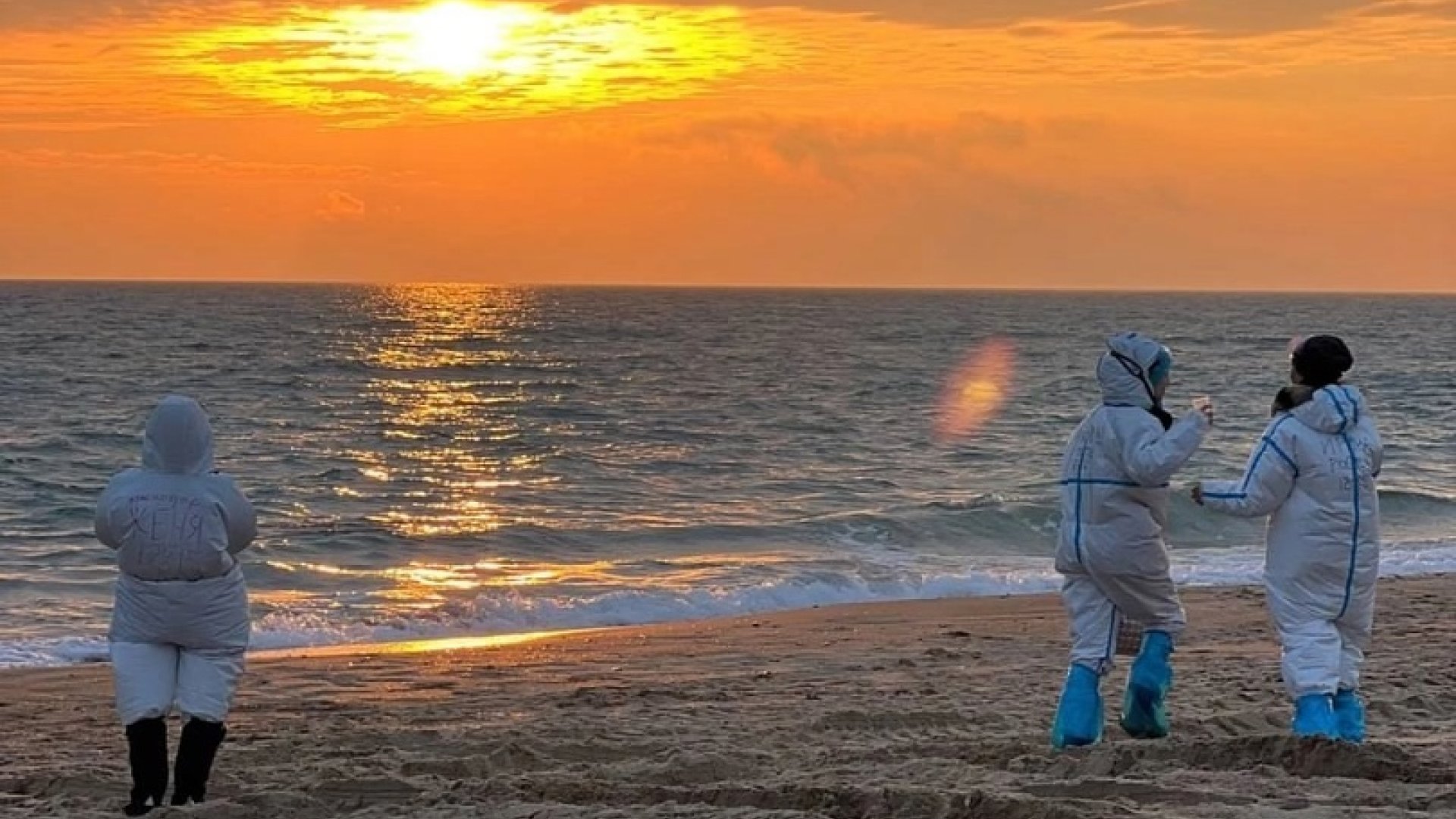 Волонтёры наблюдают закат над Чёрным морем. Фото из личного архива Татьяны Прудинник
