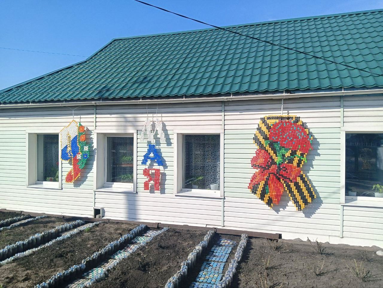 К 80-летию Победы Ольга Иванова сделала панно в виде георгиевской ленты и надпись «9 Мая» – ими украсила дом.