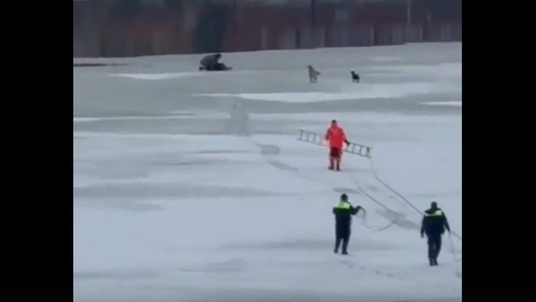 Через несколько минут на льду показался тёмный силуэт супруга. Опираясь на тюбинг, он дополз до животного. Когда к полынье подбегали сотрудники МЧС, Станислав уже спас собаку: вытащил за ошейник. Момент попал на видео и собрал десятки реакций.