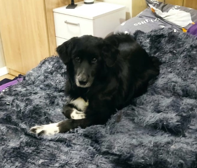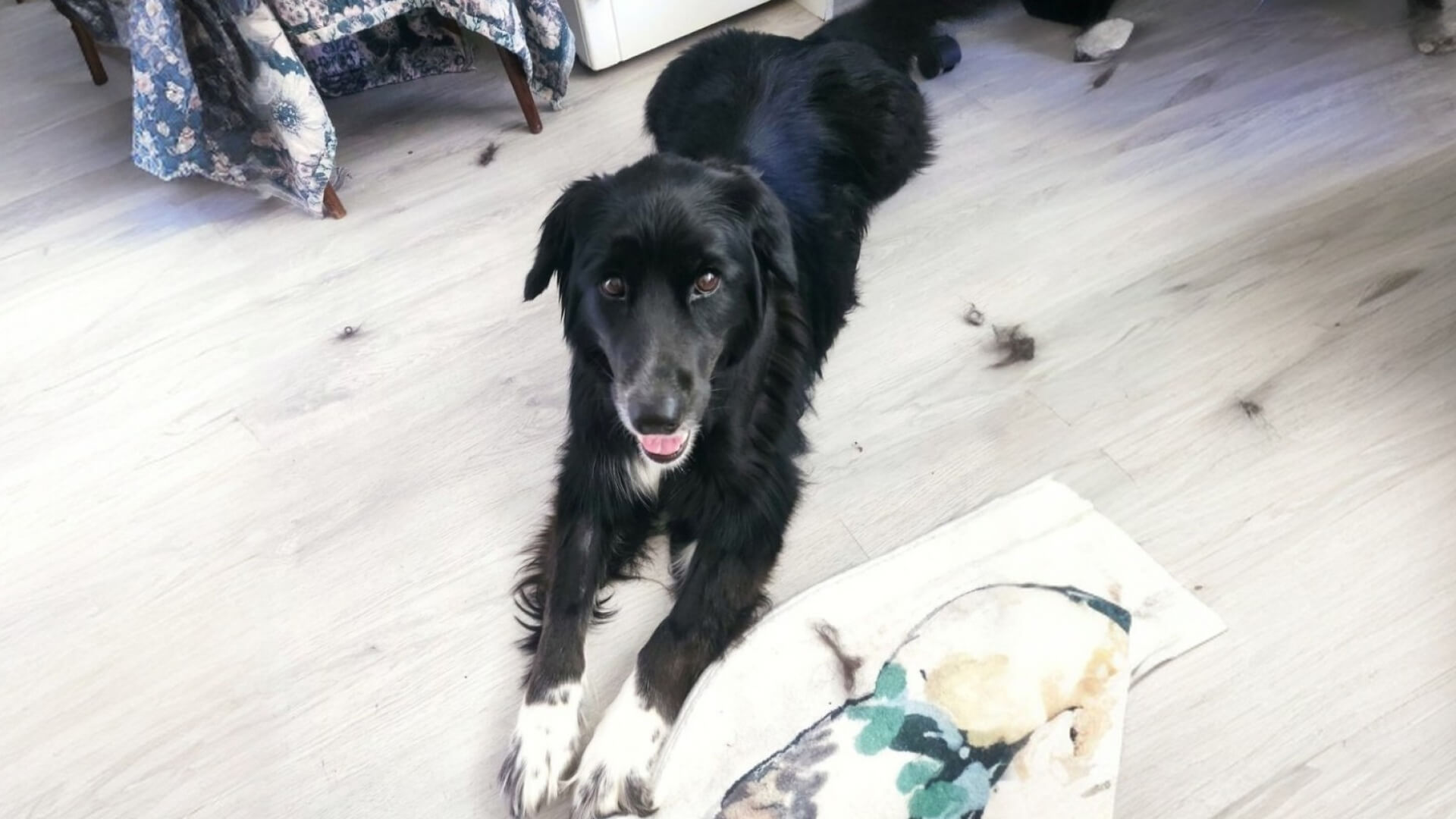 Чёрная длинношёрстная собака Мия виляет хвостом и радостно даёт белоснежную лапу при виде людей. Сейчас она живёт в семье, где её любят, пускают полежать на кровати и не ругают, если та не дотерпит до прогулки. Но ещё недавно за лужи в коридоре её чуть не лишили жизни.